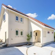 ⼤屋根のレッドが印象的な⼩屋裏2階建てのお住まい