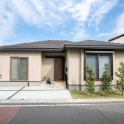 どっしりと安定した寄棟平屋 ブラウンの⾊合いが落ち着くお住まい