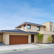 ⽔平ラインから建物の広がり、タイルによる重厚感、⾼級感を感じるお住まい