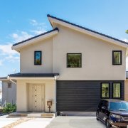 黒のラップサイディングをアクセントに三井ホームのルーカスを意識したお住まい