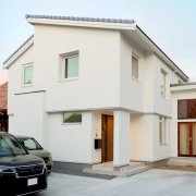 多層構造の切妻屋根により、奥行きと立体感のあるモダンな外観