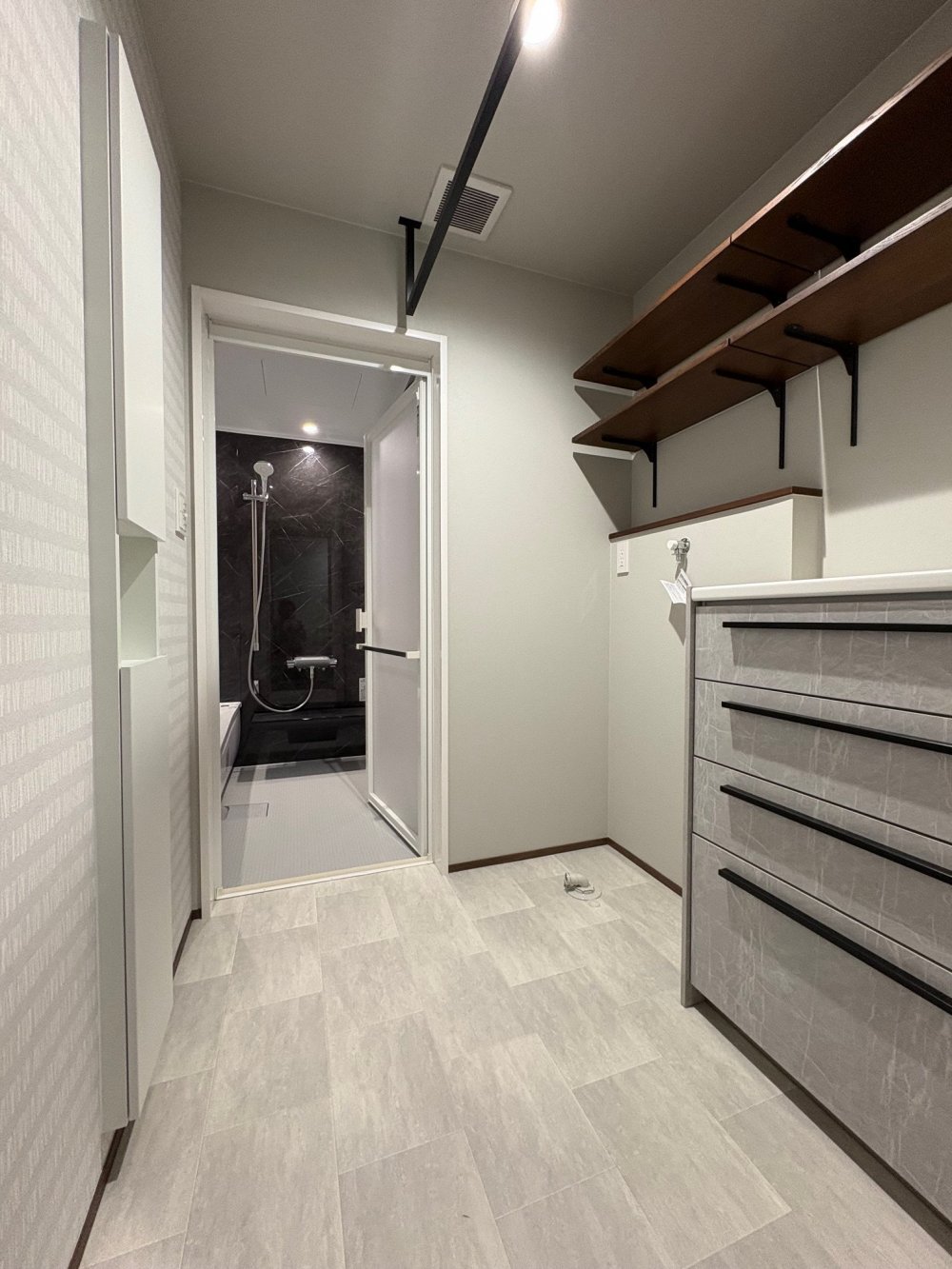 「洗う・干す・しまう」を1ヶ所で完結させる機能性と、ホテルライクな高級感が両立されたユーティリティー