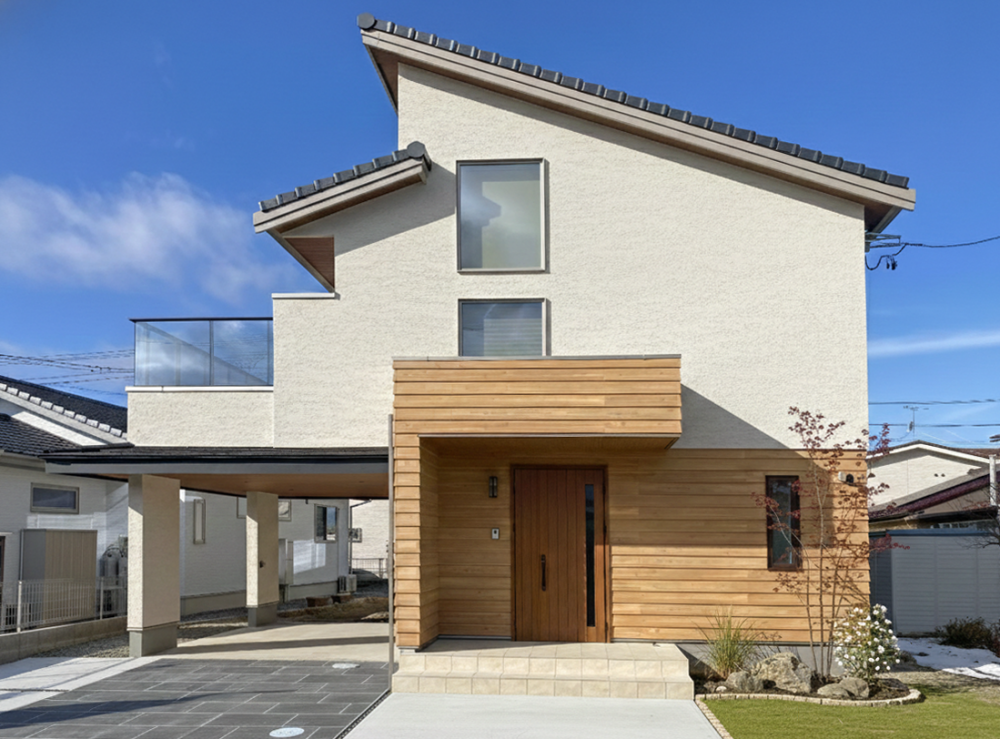 ピロティ(1階駐車スペース)とスカイラナイが紡ぐ、開放感あふれる邸宅