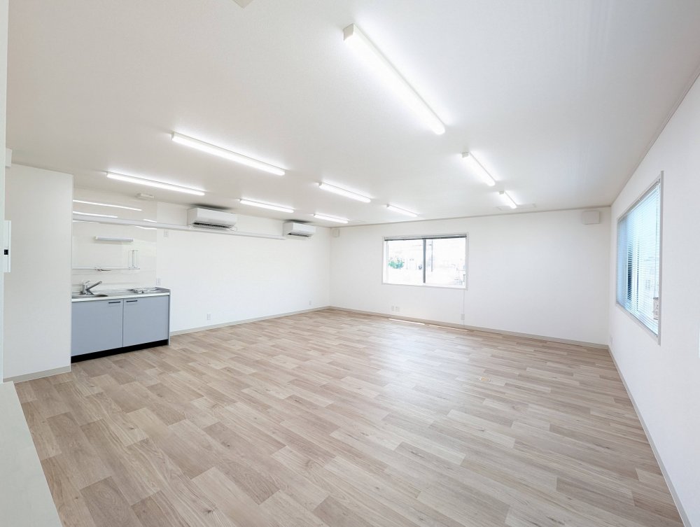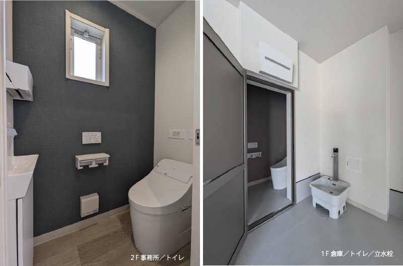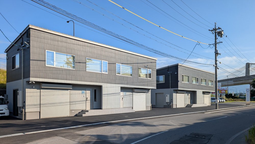 省エネルギー性能 ZEB認証の建物1階が倉庫、2階が事務所となっています。電気自動車の充電や外水栓、電子ロック、シャッター2カ所など便利な仕様となっています